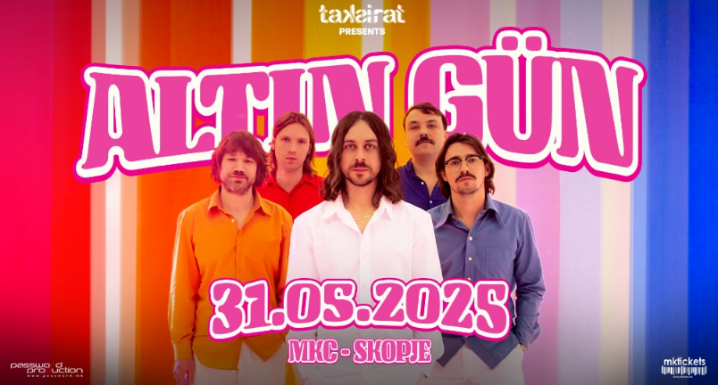Греми-номинираниот, глобално популарен холандско-турски бенд „Алтин Гун“ (Altın Gün) ќе одржи концерт во скопскиот Младински Културен Центар во сабота, 31 мај 2025 година, а публиката може да очекува вртоглаво музичко патување и фантастично шоу на премиерното гостување на овој бенд во Македонија, организирано од „Пасворд Продакшн“ и Фестивалот „Таксират“.
