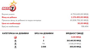 Добивка со седум погодоци немаше, а имаше две шестки вредни 263 461,50 денари.