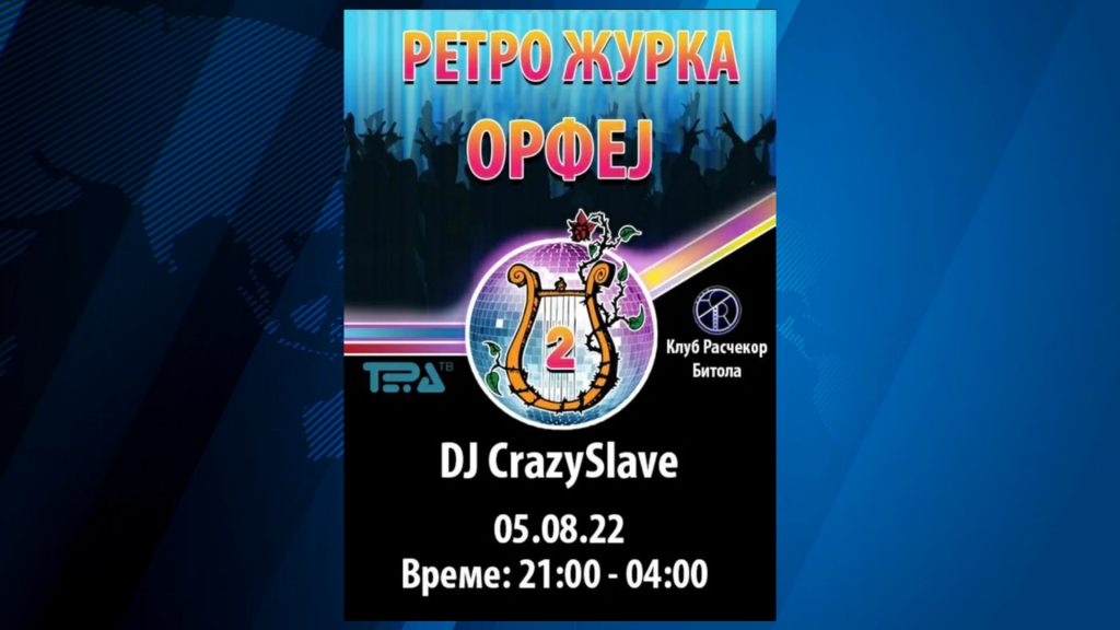 Уште еднаш да потсетиме дека втората ретро журка „Орфеј“ Битола ќе се одржи на 5-ти август во ноќниот клуб „Расчекор“ со почеток од 21 до 4 часот по полноќ. Седум часовна забава што не смее да се пропушти. Првата журка беше преубава…Да ја направиме оваа за паметење, велат тие.