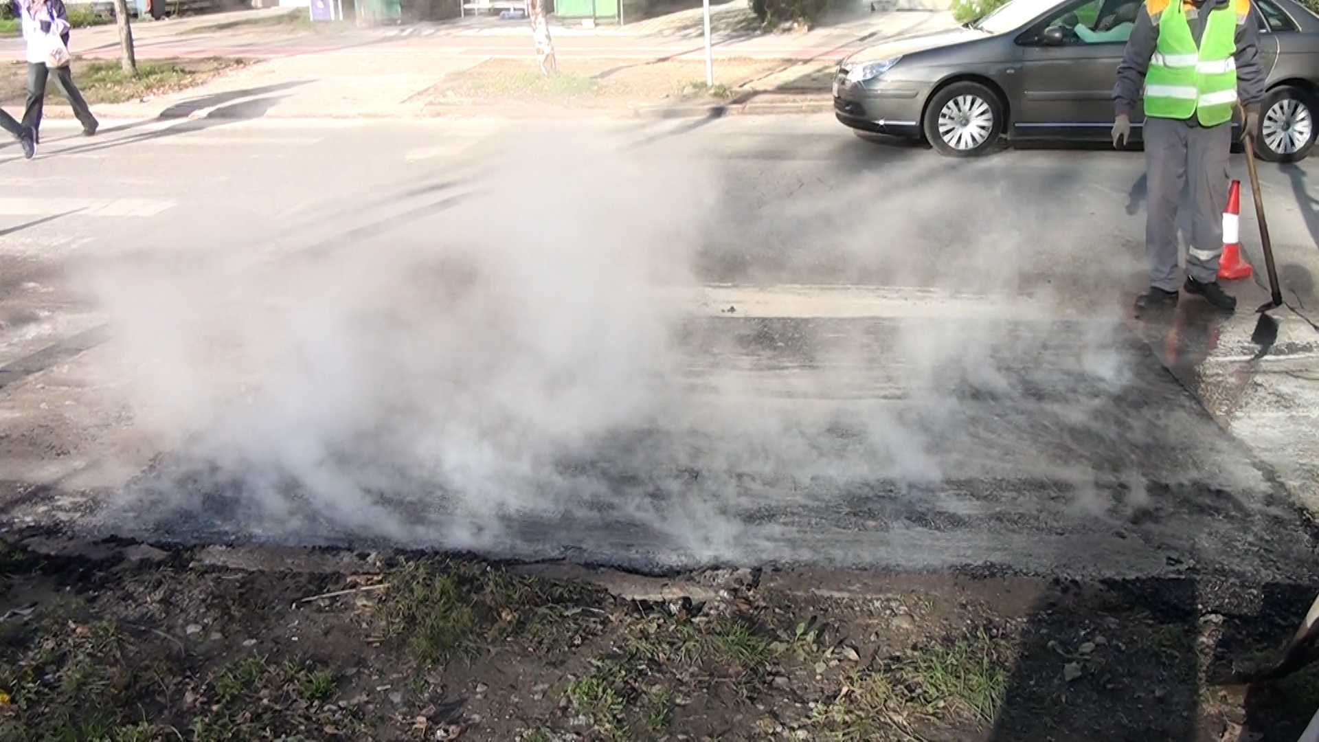 Се изврши крпење на дупките со асфалт. Нашата камера го регистрираше работниот процес со кој се санираше коловозот токму наспроти Клиничката болница каде што состојбата беше и најкритична и токму поради тоа алармираше ТВ Тера.