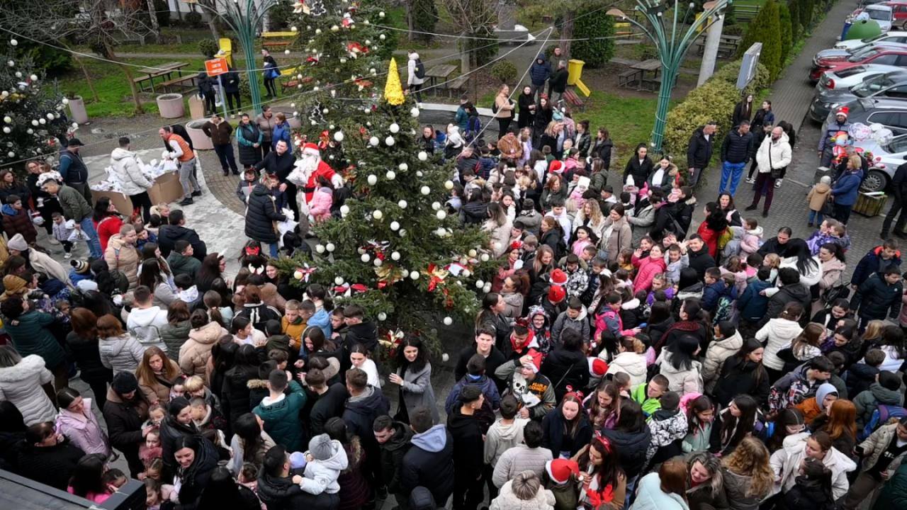Со Дедо Мраз поделивме 700 новогодишни пакетчиња, а хорот „Ѕвончиња“ и театарската претстава „Дедо Мраз и трите прасиња“ на Бабец театар ги забавуваа нашите најмлади и најмили.