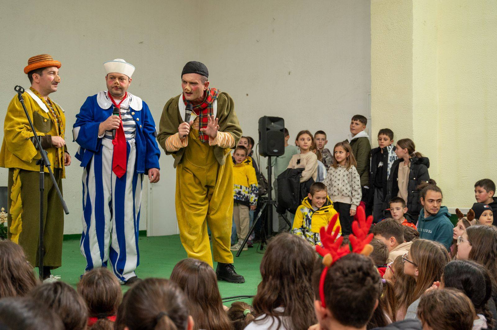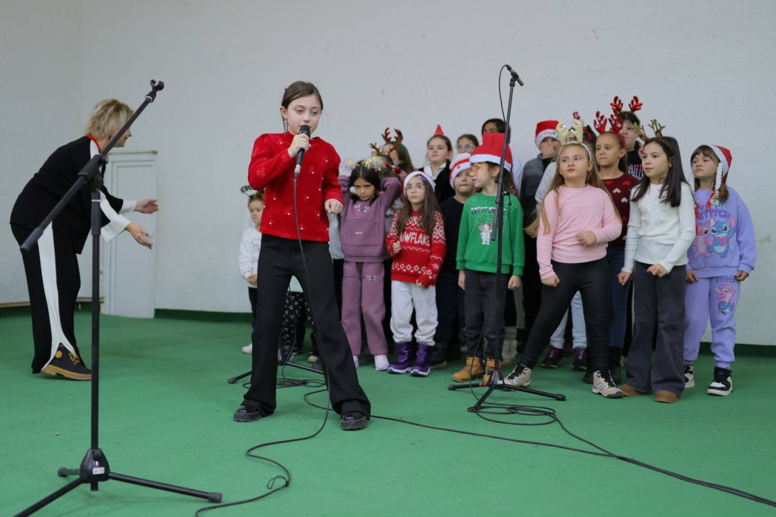 Предновогодишно расположени, со песнички, игри и позитивна енергија, учениците од трите основни училишта учествуваа и во новогодишниот базар со нивните рачно изработени украси.