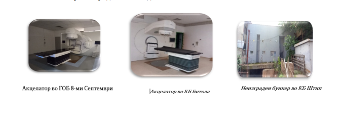 На ниво на држава во јавното здравство обезбедени се вкупно 9 линеарни акцелератори за 4 ЈЗУ со вкупна набавна вредност од 21,8 милиони евра за вршење радиотераписки услуги за пациенти со малигни заболувања.