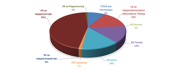 На ниво на држава 9 ЈЗУ располагаат со 18 ангиографи ставени во употреба со вкупна набавна вредност од 12,9 милиони евра, од кои 10 се набавени во периодот од 2021 до 2023 година. Иако бројот на извршени услуги со ангиограф се зголемил за 68% во 2023 година во споредба со 2021 година, утврден е незадоволителен степен на искористеност на дел од овие уреди, најчесто поради недостаток на стручен кадар и необезбедени просторни услови, како и поради отсуство на клинички патеки за вршење на овој вид услуги.