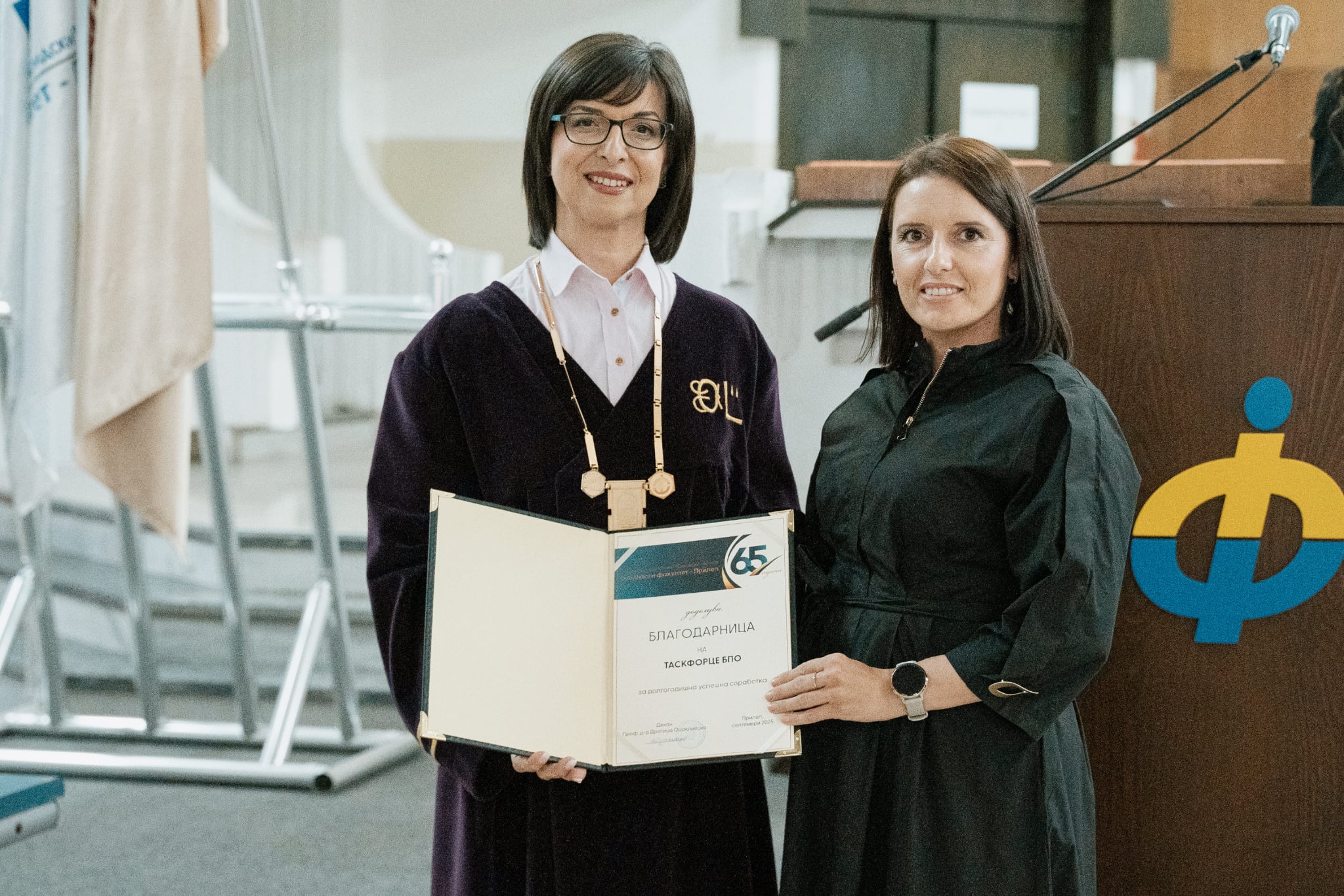 На 19.09.2025 година Економскиот факултет од Прилеп достојно го одбележа својот 65-годишен јубилеј. Во поздравниот говор, деканката, проф. д-р Драгица Оџаклиеска истакна дека досегашното успешно функционирање на Факултетот претставува потврда за неговиот институционален капацитет да профилира кадровски потенцијал согласно развојните потреби на земјата и конкурентските предизвици на глобалното окружување.